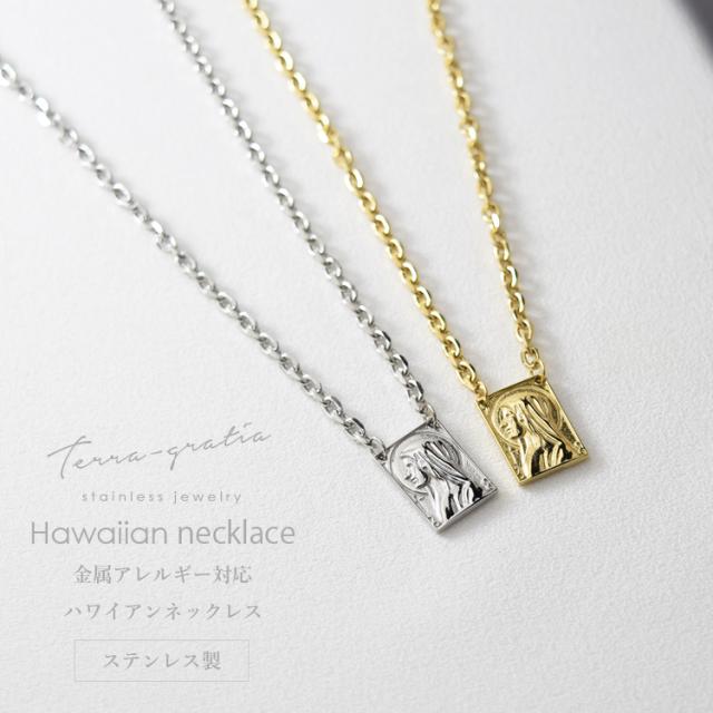 ハワイアンジュエリー ペアネックレス 2本セット 金属アレルギー ステンレス サージカルステンレス 316L つけっぱなし マリア メダイ スクエア リバーシブル ハワイアン ペンダント あずきチェーン gnss330pair