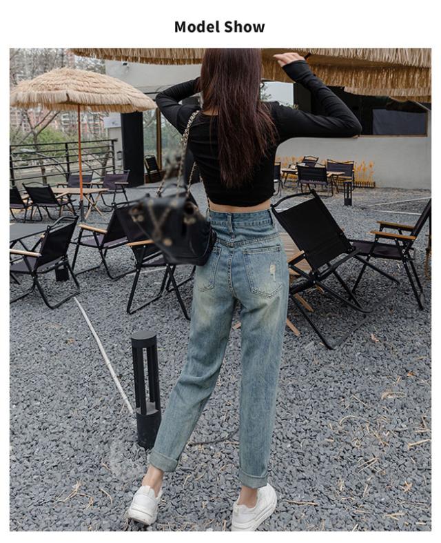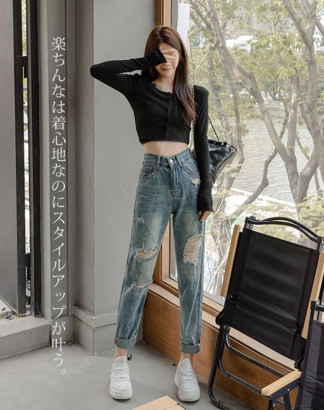 デニムパンツ ダメージ レディース ロング パンツ ボトムス ジーンズ ゆったり ワイドパンツ ハイウエスト