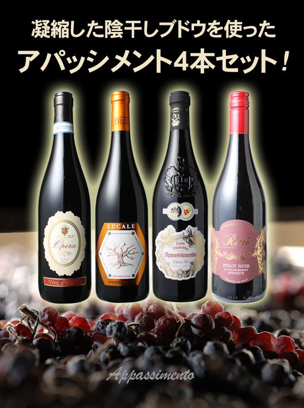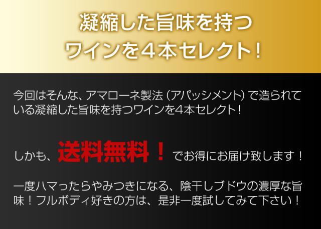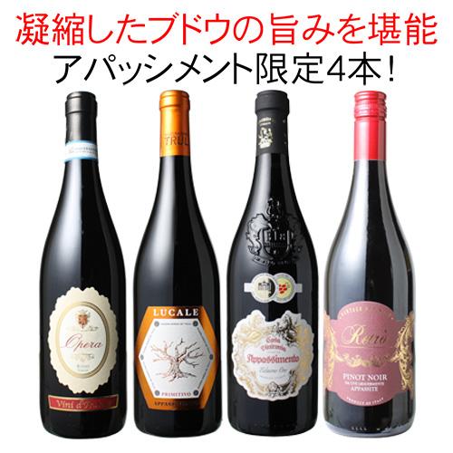 【送料無料】ワインセット 第14弾 アパッシメント 飲み比べ 4本 セット 濃厚 フルボディ 陰干しブドウ パーティー 家飲み 御祝 誕生日 凝縮したブドウの旨み