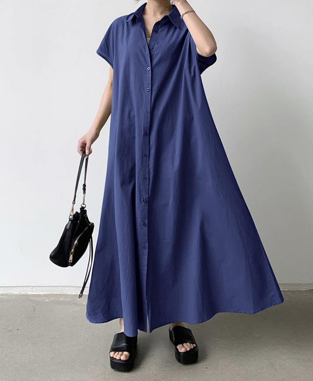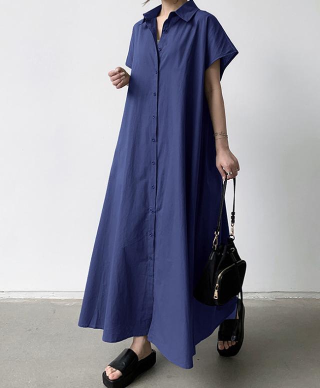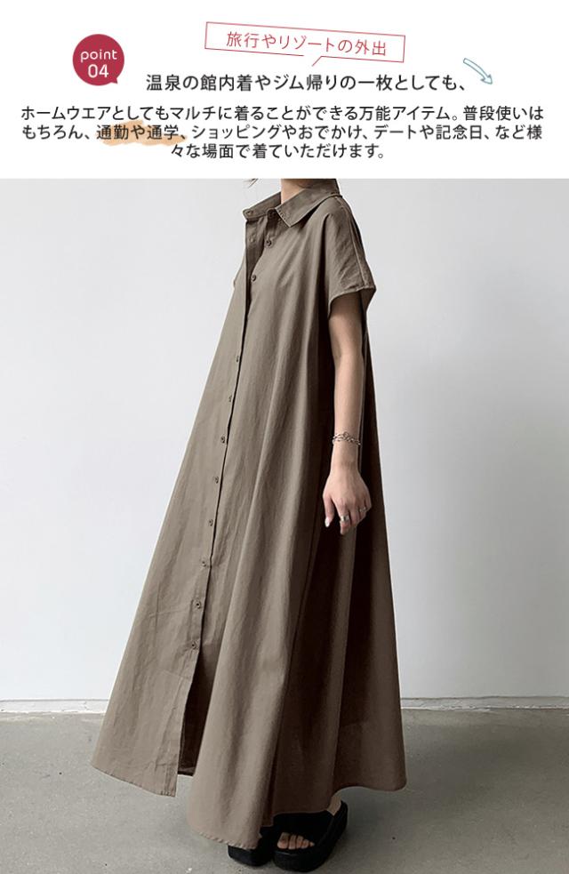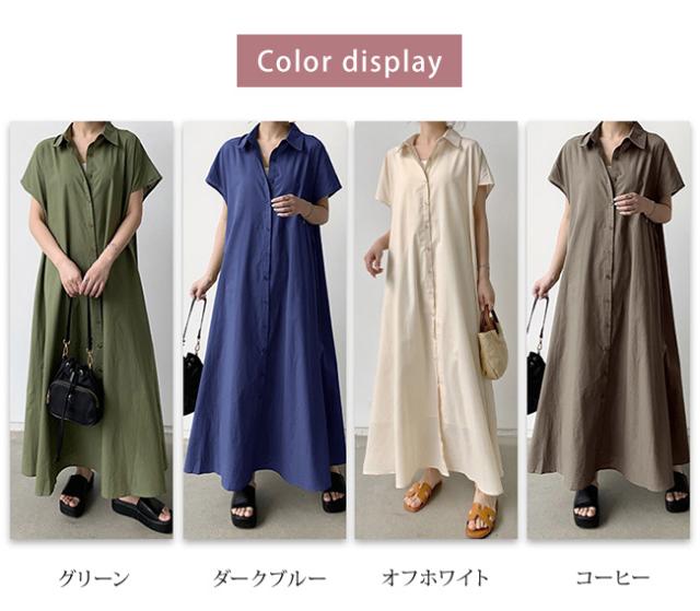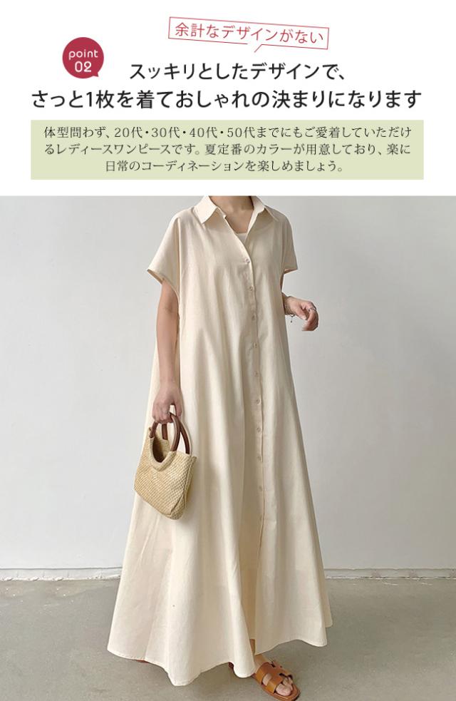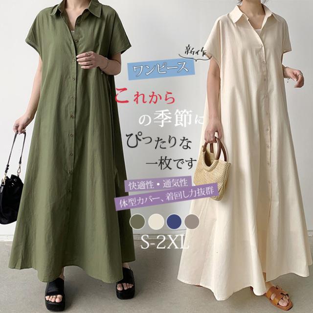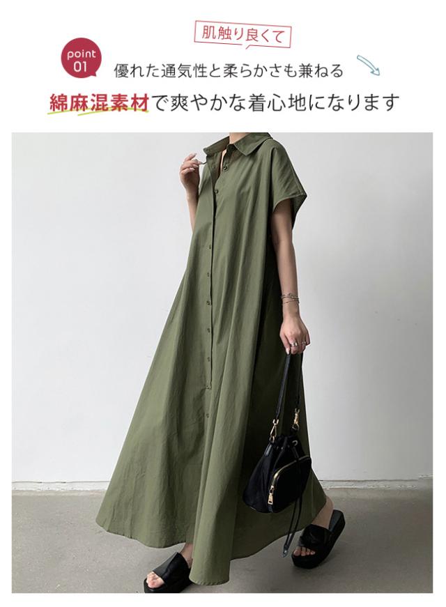 ワンピース レディース シャツワンピース 襟付き 大人 上品 夏 綿麻 半袖 ロング丈 きれいめ カジュアル 体型カバー おしゃれ 大きいサイズ