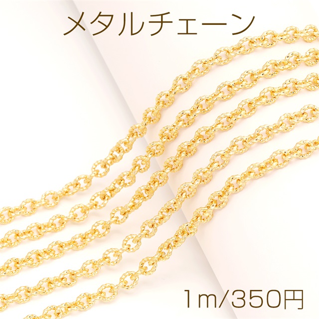 メタルチェーン ツイストデザインアズキチェーン ネックレスチェーン アクセサリーチェーン 色落ちしにくい 18Kゴールドメッキ(長さ1m)