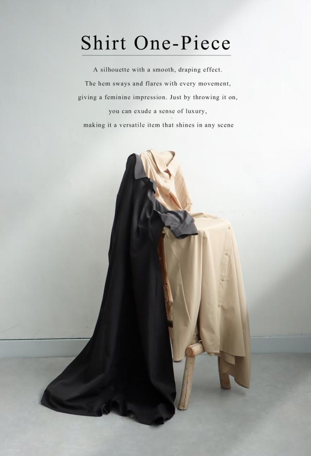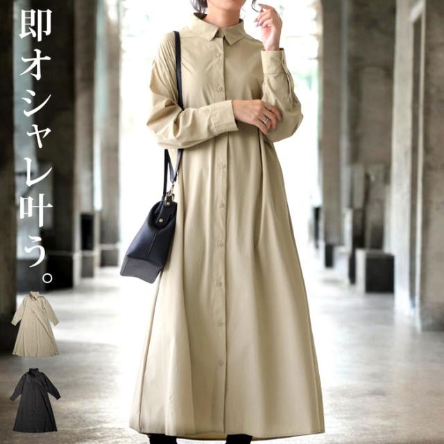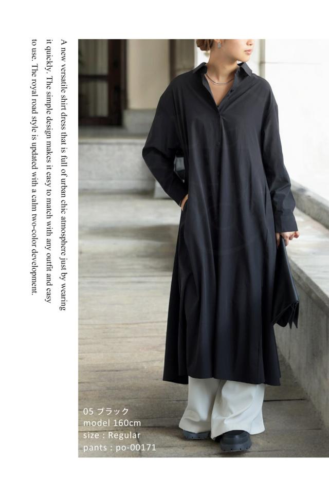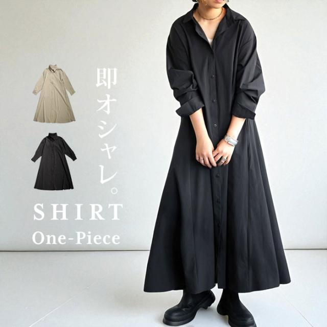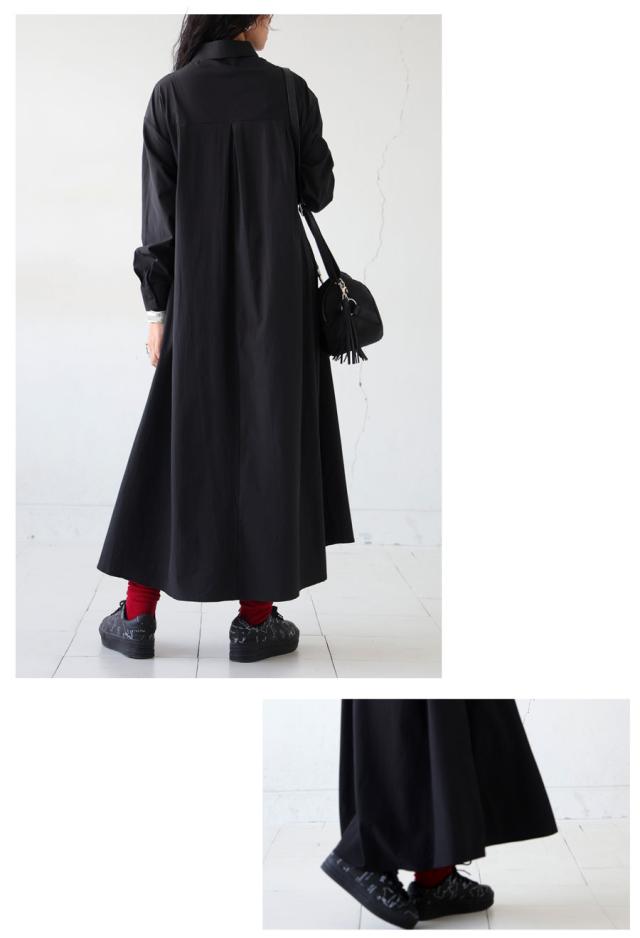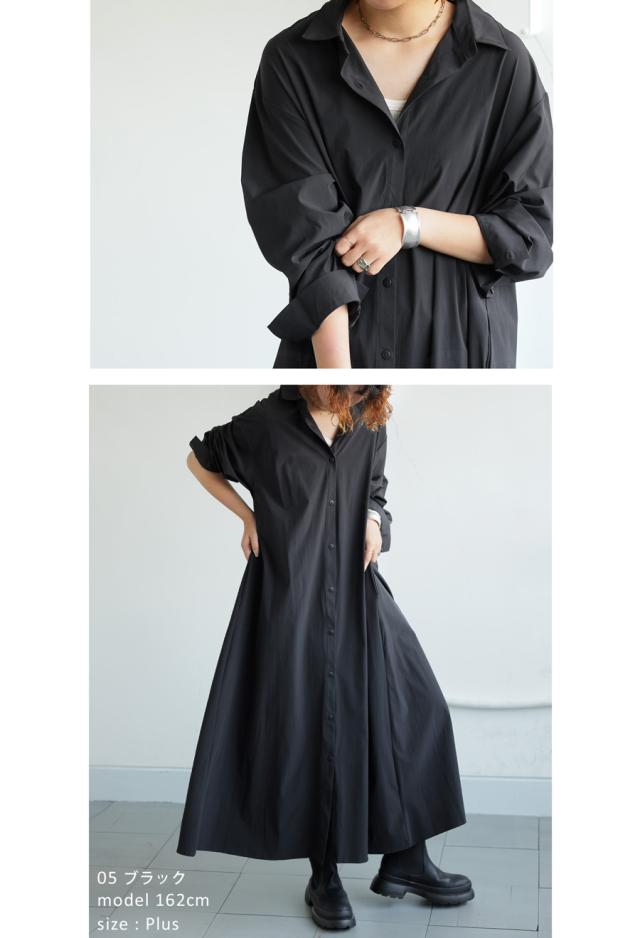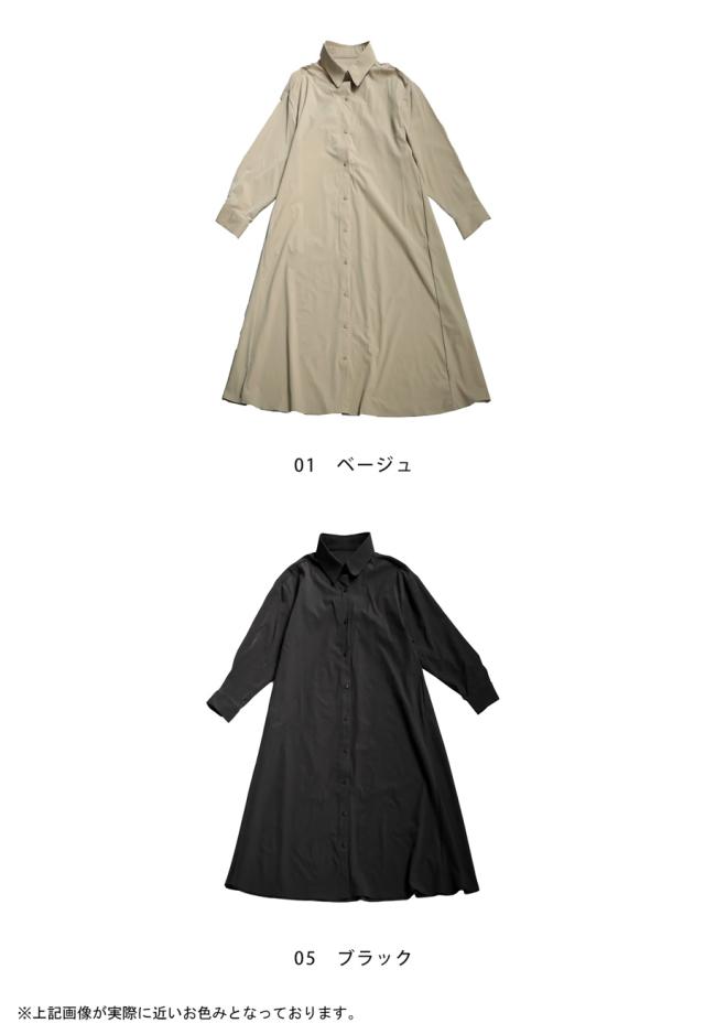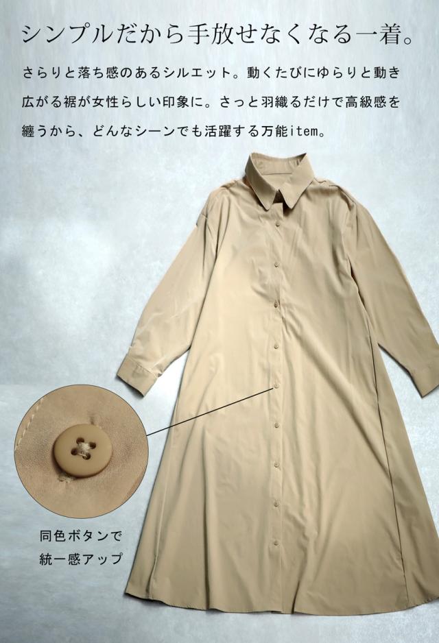 pl-00044 無地 レギュラーカラー 羽織り 前開き きれいめ 上品 高級感 Aライン レイヤード 重ね着 ロングワンピース ワンピ ロングワンピ ロングシャツ シャツワンピ ストレッチ