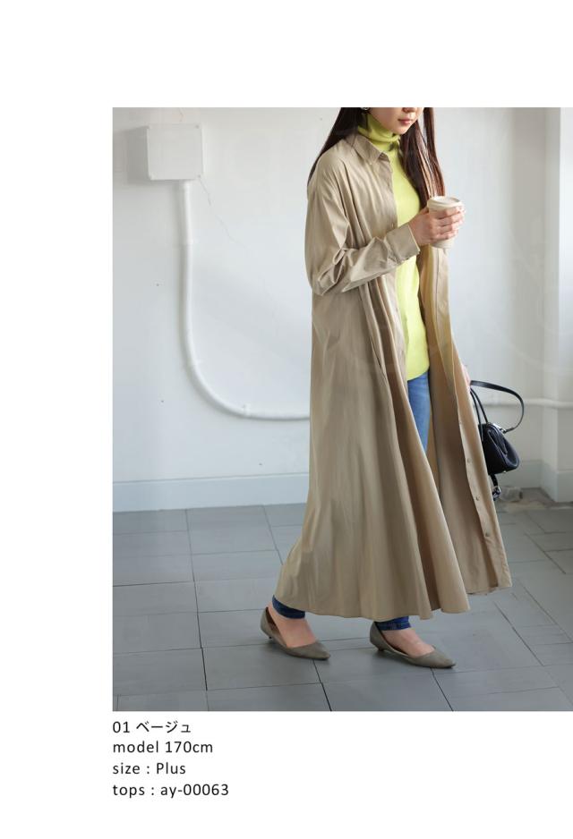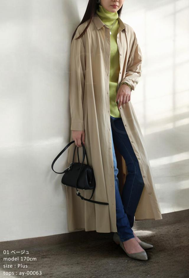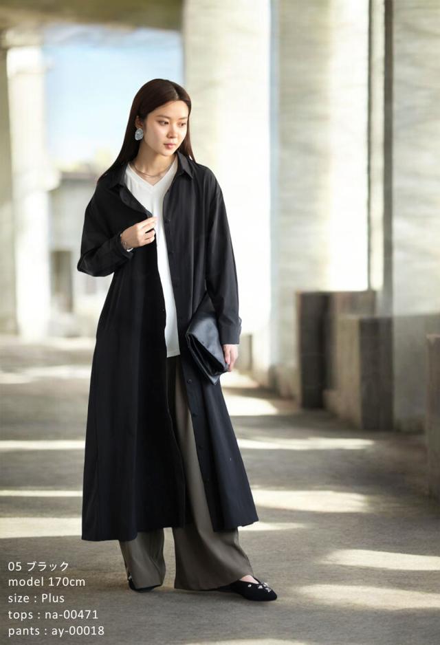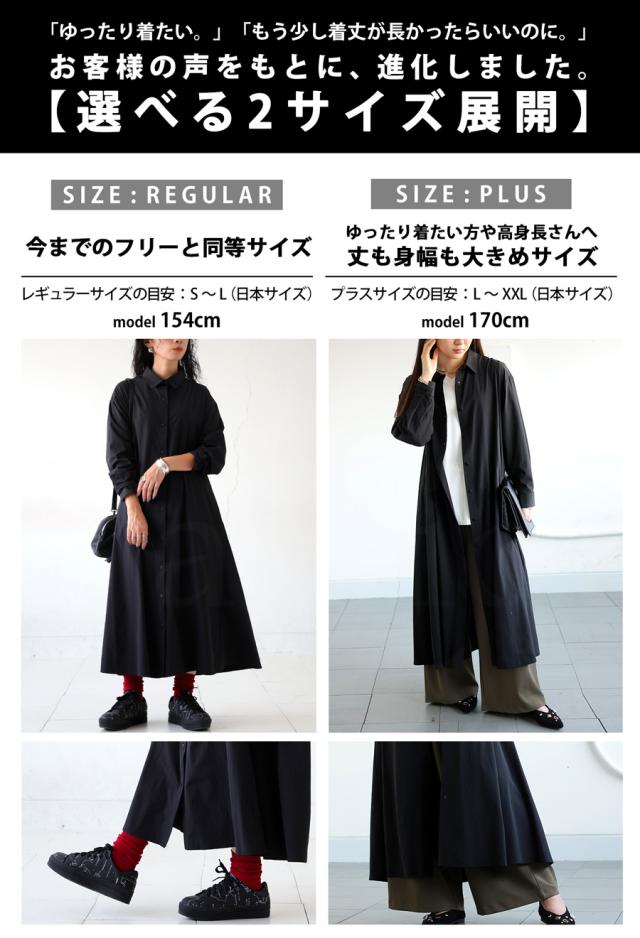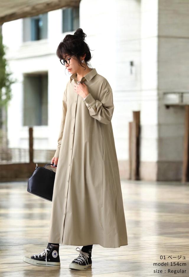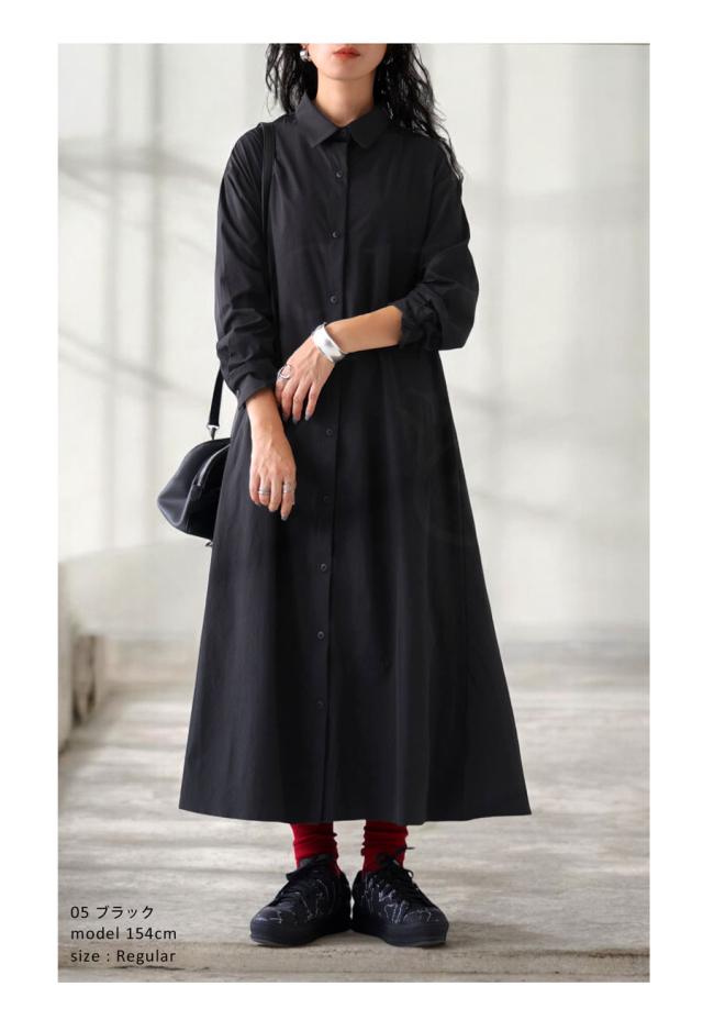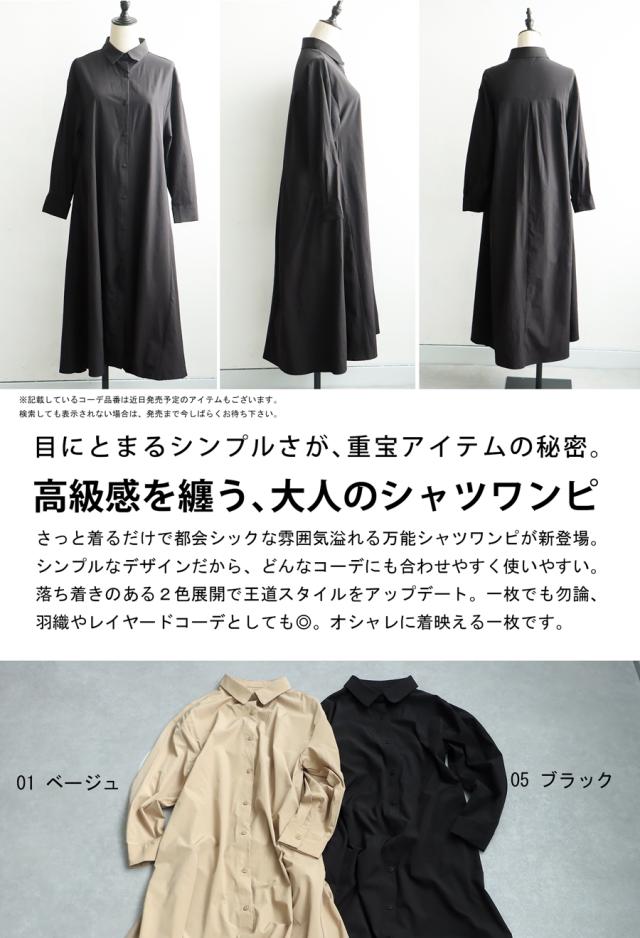 pl-00044 無地 レギュラーカラー 羽織り 前開き きれいめ 上品 高級感 Aライン レイヤード 重ね着 ロングワンピース ワンピ ロングワンピ ロングシャツ シャツワンピ ストレッチ