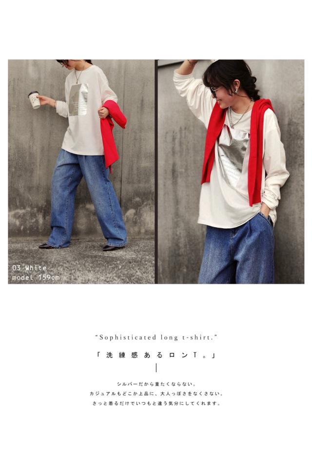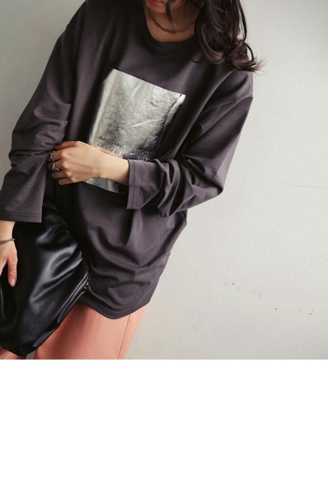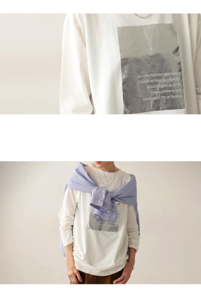 浮かずに合わせやすいシルバーの箔押しが、デイリーコーデピッタリなロンT。