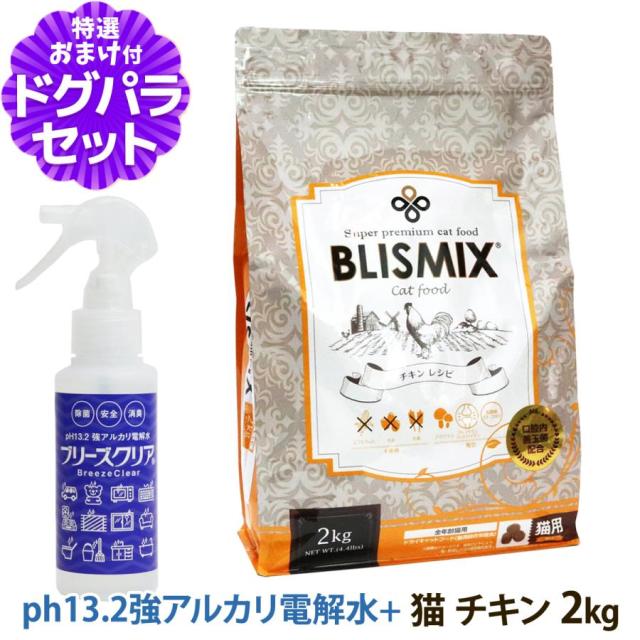【沖縄以外送料無料】ブリスミックス 猫用チキン 2kg+ph13.2強アルカリ電解水100ml キャットフード アレルギー対応 口腔内善玉菌K12配合