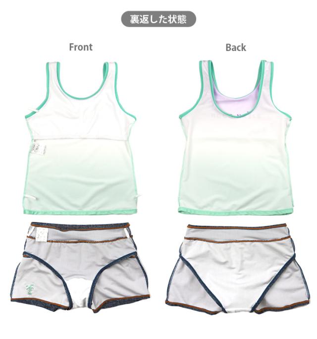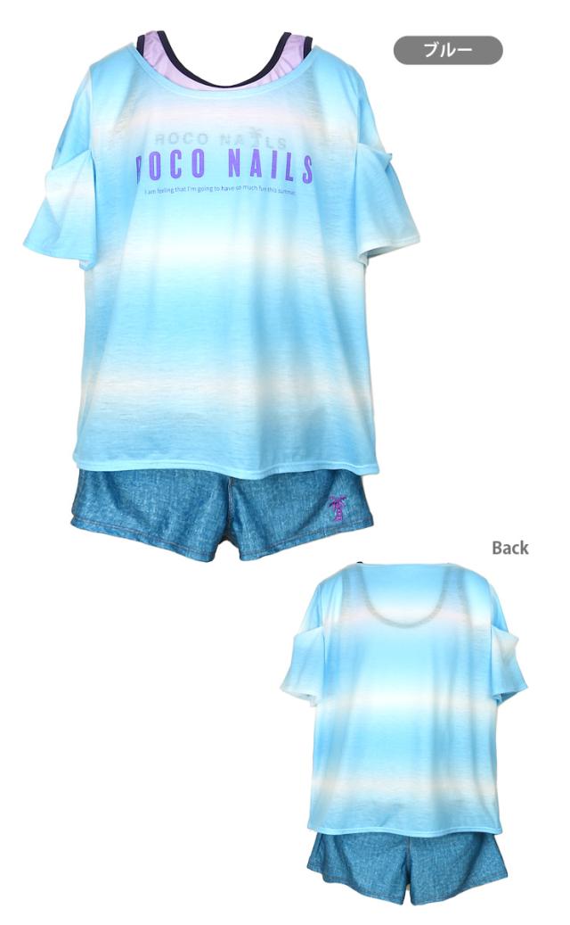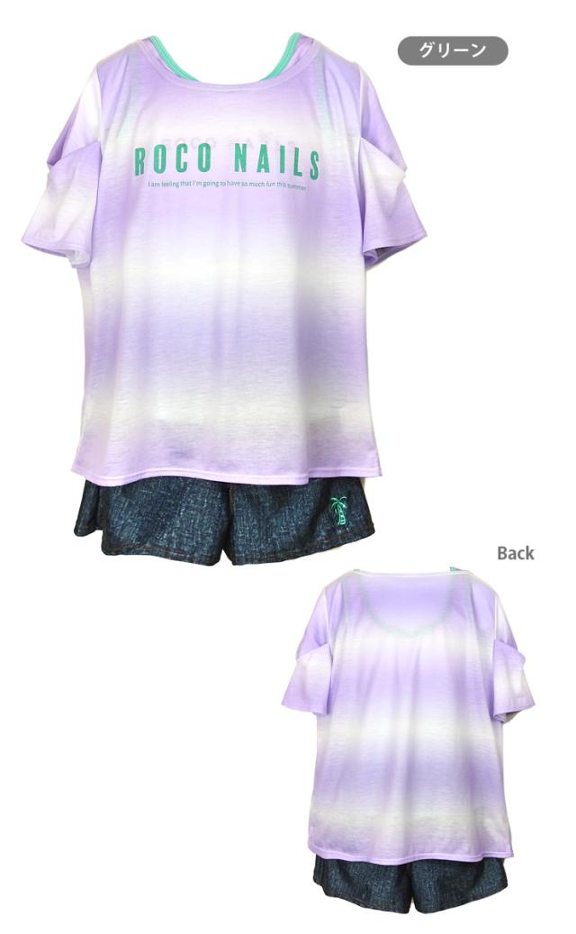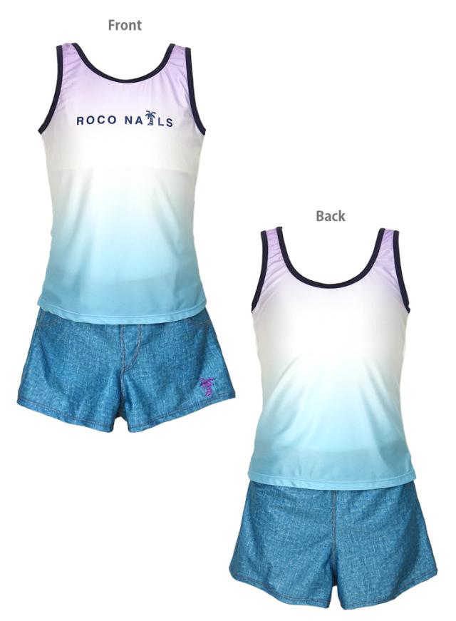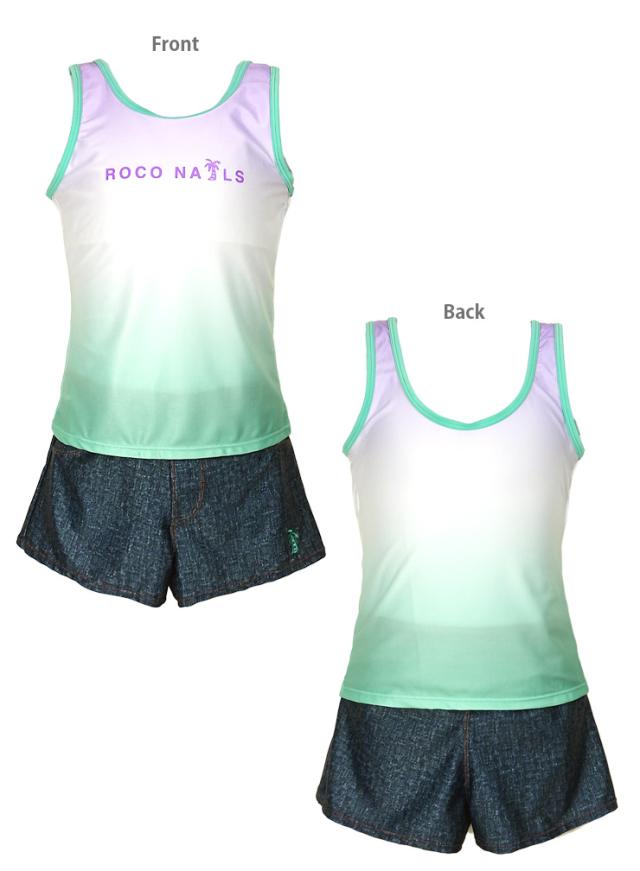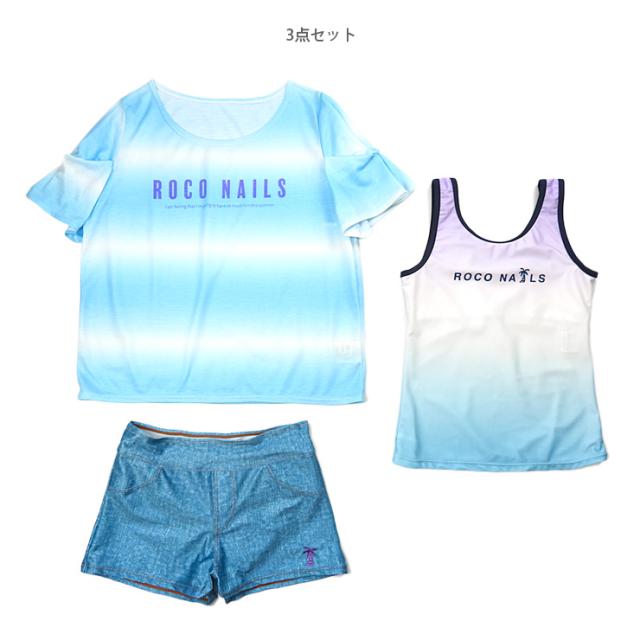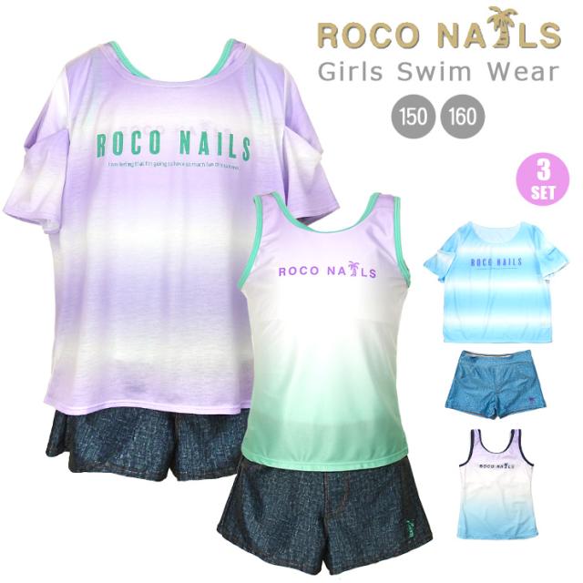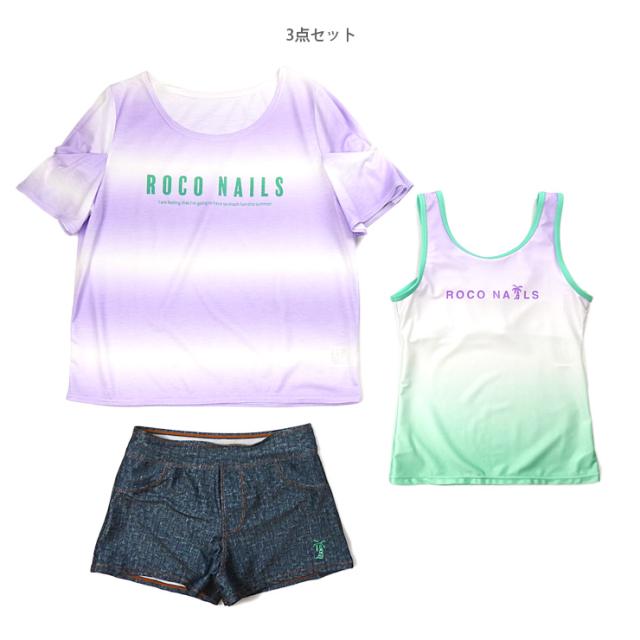 ROCO NAILS キッズ・ジュニアタンキニ水着 150 160 ブルー グリーン ロコネイル 372351 上下3点セット セパレート水着 No.sw3562