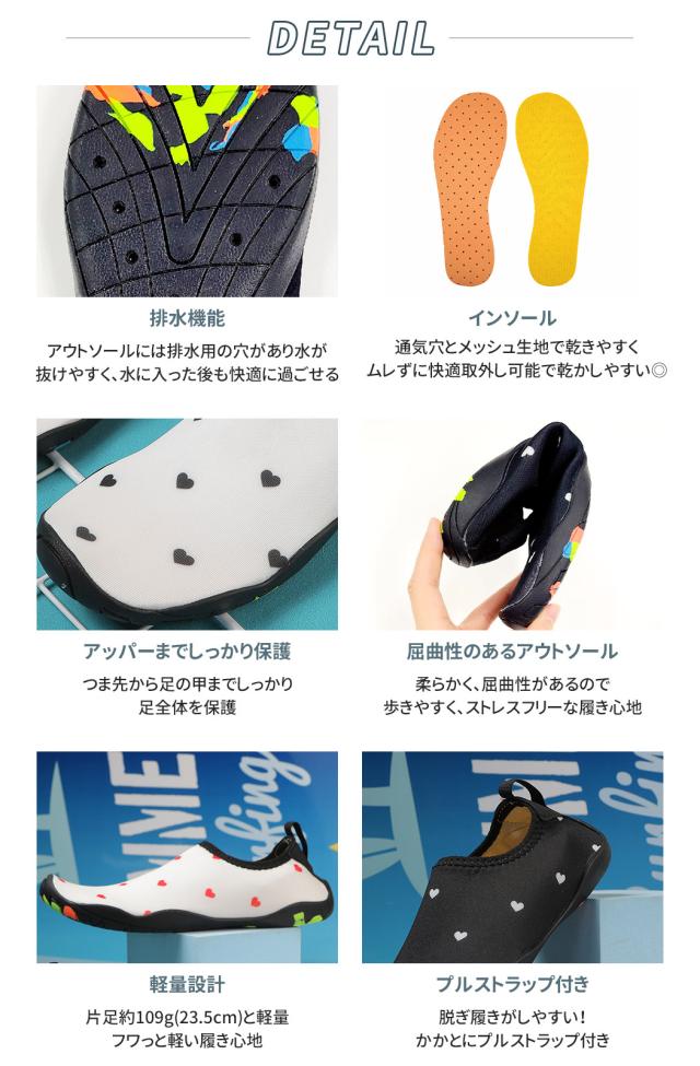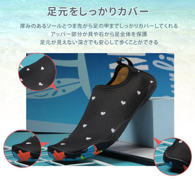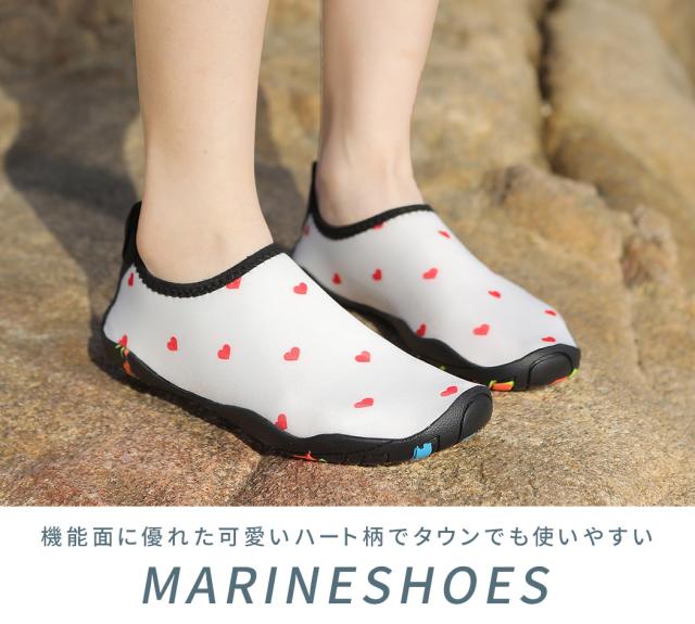 春新作 マリンシューズ レディース 水陸両用 ハート柄 海 岩場 アクアシューズ 靴 夏 海水浴 軽量 アウトドア シュノーケル ダイビング マリンスポーツ インソール 取り外し可能 メッシュ アウトソール プルストラップ 柔らか