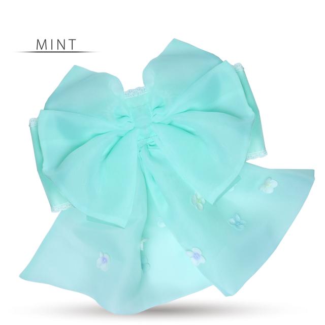 リボンとフラワーモチーフがかわいい浴衣用作り帯です。