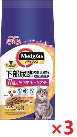 【3個セット】新メディファス室内猫毛玉ケアプラス11歳から 705g ペットライン キャットフード