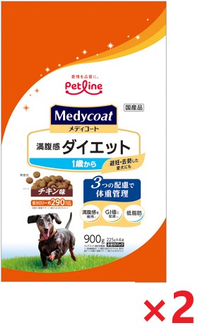 【2個セット】新メディコート満腹感ダイエット1歳 900g ペットライン ドッグフード