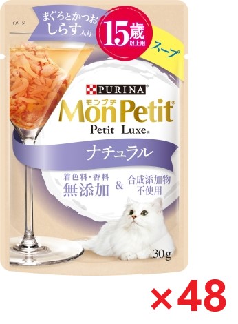 【48個セット】モンプチ プチリュクスパウチ ナチュラル スープ 15歳以上用 しらす入りまぐろとかつお キャットフード ネスレ日本 ペット フード 30g