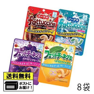 ブルボン フェットチーネグミ 詰め合わせ 8袋 (4種類×各2袋) コーラ ソーダ グレープ レモン