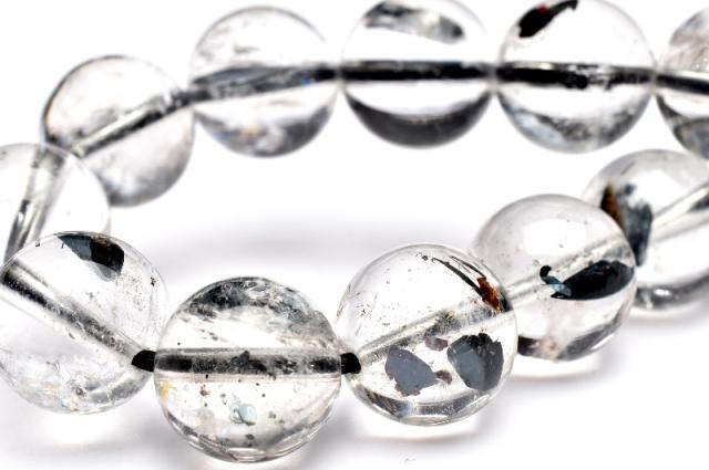 | 特徴・意味 | 金属質なマイカの煌めきがシックでかっこいいアイテムです。 黒いマイカからシルバーのシラーが浮かび上がります。 内包量多めで見応えも十分です。 黒雲母(バイオタイト)が水晶に内包された希少な石です。黒雲母にもかかわらずモルダバイトのような深い緑の色合いに見えるのは、成分にクロム(Cr)を含むためです。若干の透過性があり光を当てるとペリドットを彷彿とさせる輝きを見せます。 |