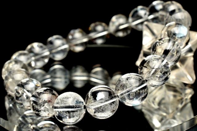 【1点物】希少◇金属シラー ブラックマイカインクォーツ 9.5mm ブレスレット 【ネコポス送料無料】_L543