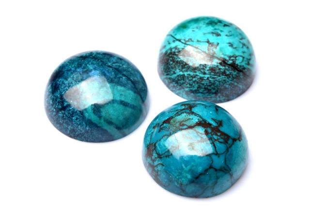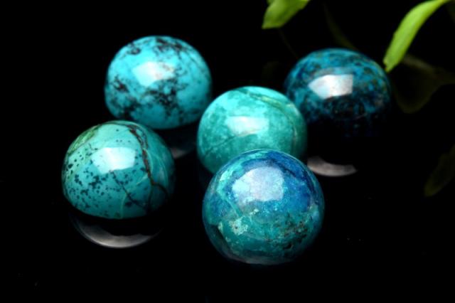 | 特徴・意味 | 鮮やかなコントラストがまるで海洋のようです。 高発色で特有のマーブル模様も美しいです。 クリソコラは、銅鉱床の酸化帯で、アジュライトやマラカイト、ヘマタイト等とともに産出します。 クリソコラは和名を「珪孔雀石(けいくじゃくせき)」と言います。 マラカイトの和名を「孔雀石」と言いますが、クリソコラの和名と似ている理由はマラカイトの組成に、珪素を加えたような組成となっているからです。 ブルーが本体の多くを占め、グリーンやブラウンなどのカラーが混ざり合って、出来ているため、丸く加工されたクリソコラは、宇宙から見た地球のような外観となっています。 |