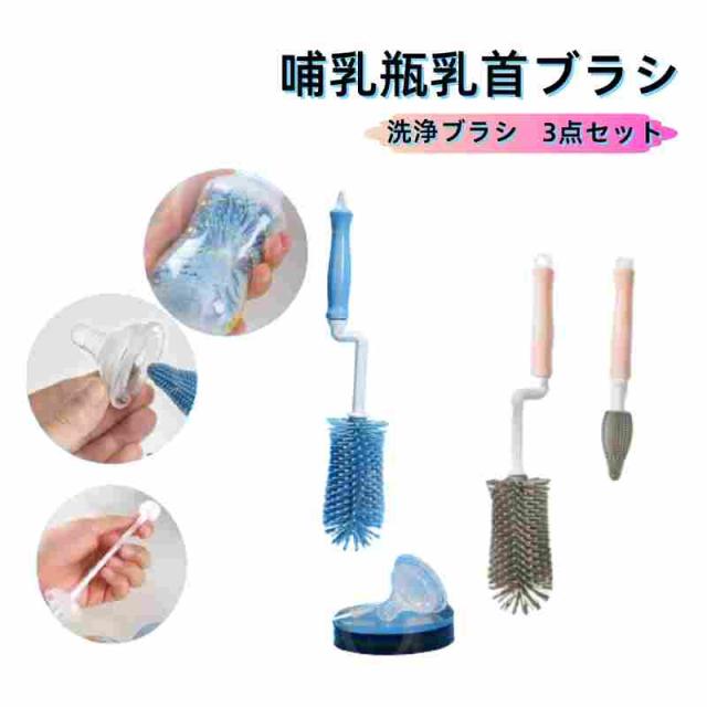 哺乳瓶乳首ブラシ ボトルブラシ 水筒 洗浄ブラシ シリコン ブラシセット 3点セット 360度回転 使いやすい 持ち運び ベビ-