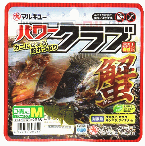 「パワーイソメ」に用いられている素材を使用し、カニを模したフォルムに仕上げました。カニをエサにして釣ることが多いクロダイ・チヌ、カサゴ、キジハタ、アイナメなどに特に効果的。穴釣り、ブッ込み、落とし込み(ヘチ釣り)など様々な釣りに対応し、ブラクリやジグヘッドにつけてもOK。MとLの2つのサイズに青ガニ、茶ガニ、赤ガニ、白ガニ(Mのみ)、黒ガニ(Mのみ)のカラーをラインナップしています。