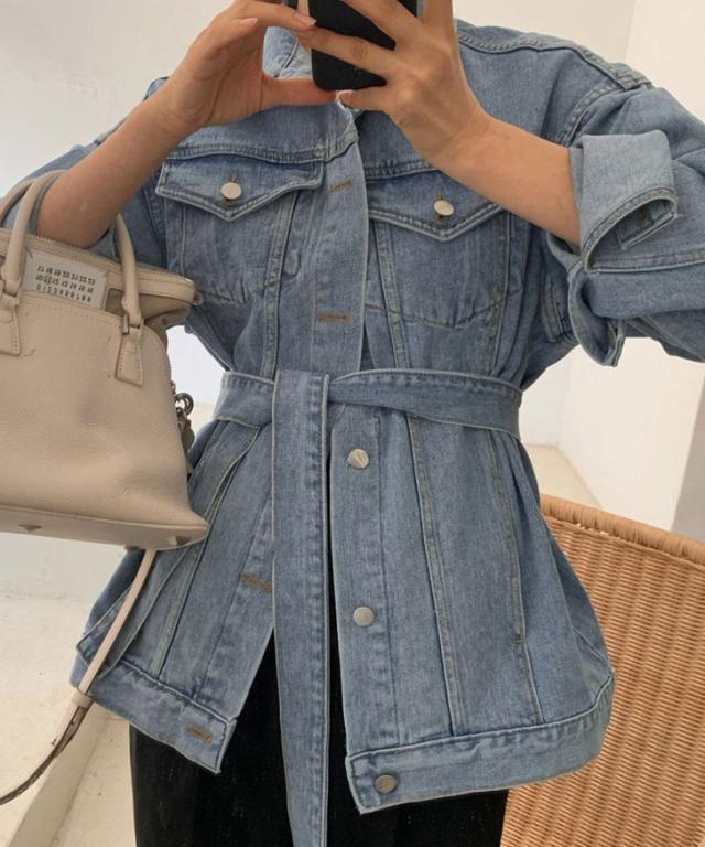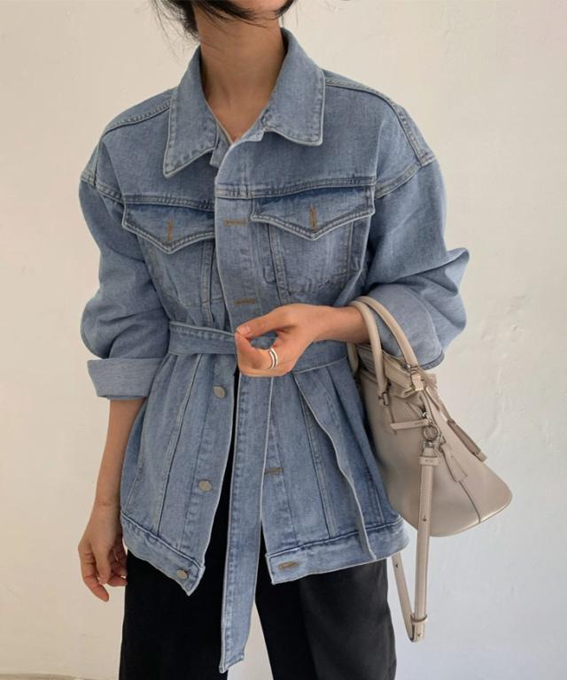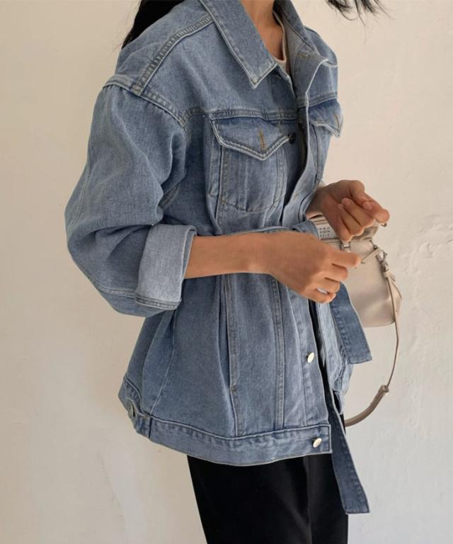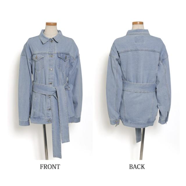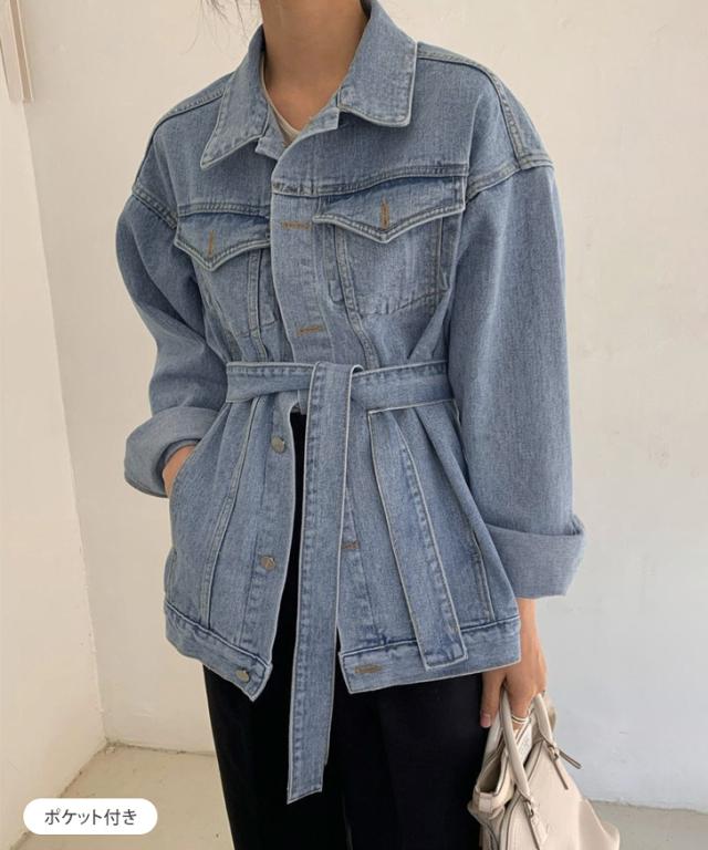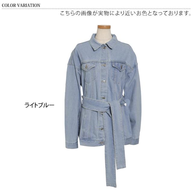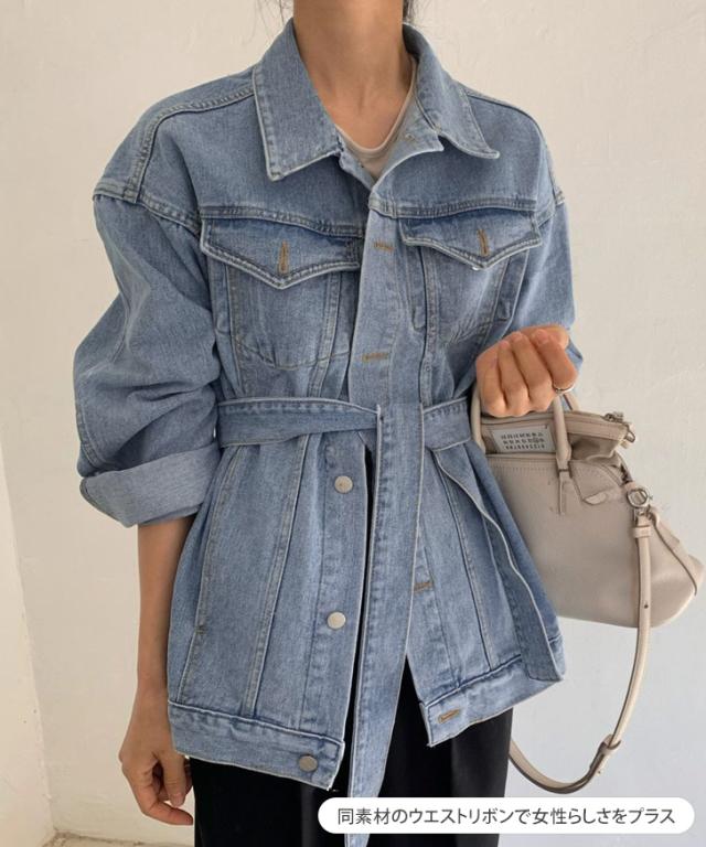 新作 リボン付きオーバーサイズデニムジャケット レディース アウター 羽織り 上着 ジージャン Gジャン 長袖 ロング丈 ビッグ 大きめ 大きいサイズ ゆったり 大人 定番 カジュアル きれいめ 可愛い 通年 古着風