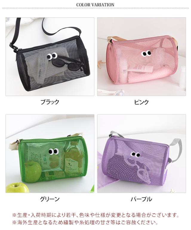 新作 目玉デザイン メッシュ ミニ ドラムバッグ レディース メンズ ショルダーバッグ ミニバッグ 肩掛け 手持ち 軽量 刺繍 アウトドア レジャー 旅行 公園 砂場 子供 夏 海 プールバッグ スパバッグ かわいい