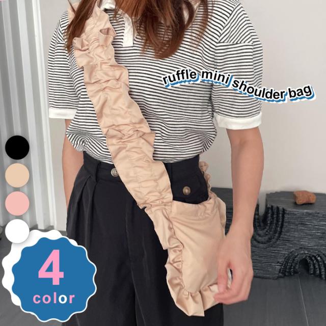 新作 ナイロン フリル ギャザー ミニ ショルダーバッグ レディース バッグ ミニバッグ カバン 小さい 小さめ 斜めがけ 肩掛け 軽量 スマホポーチ おしゃれ かわいい バレエコア ロリータ 大人 子供 お出かけ
