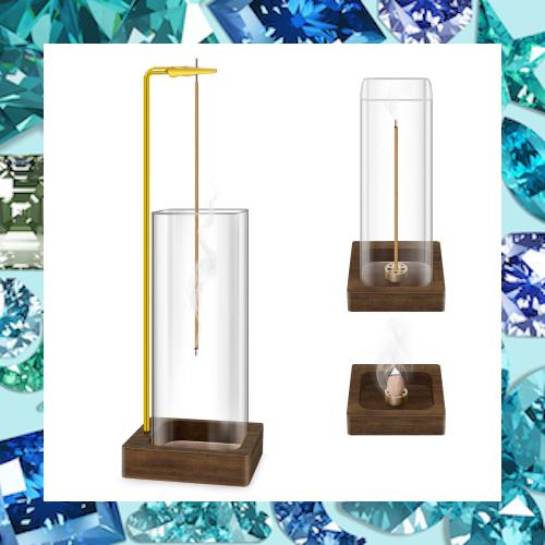 【お香立て おしゃれ】ベースはクルミの木を採用、容器はガラス製透明感があり、お香は逆さまの状態ででガラス容器の真ん中に掛けられます。薫る煙は下から上への流れであり、秘めやかでありながら濃密な香りと静寂を五感で感じると、このうえない贅沢な時間が愛おしくなります。