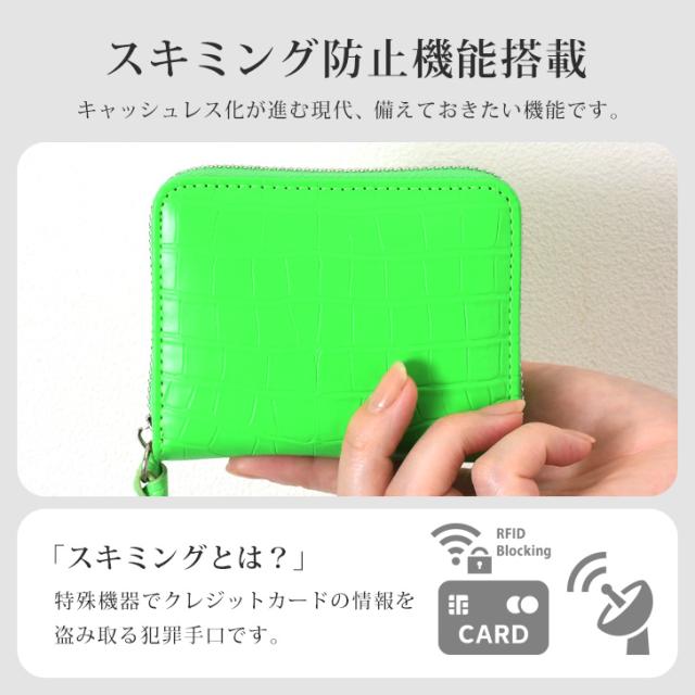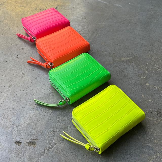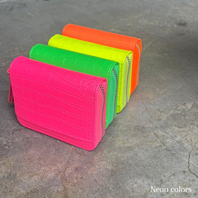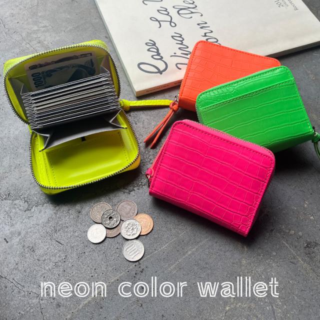 新作 ネオンカラー メタリック クロコ型押し ファスナー ジャバラカードウォレット レディース ウォレット 財布 おしゃれ 蛍光 おしゃれ かわいい カード入れ 小銭入れ お札 通す 蛇腹 お札が折れない 二つ折り