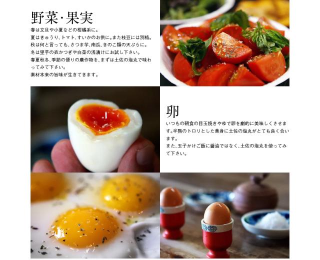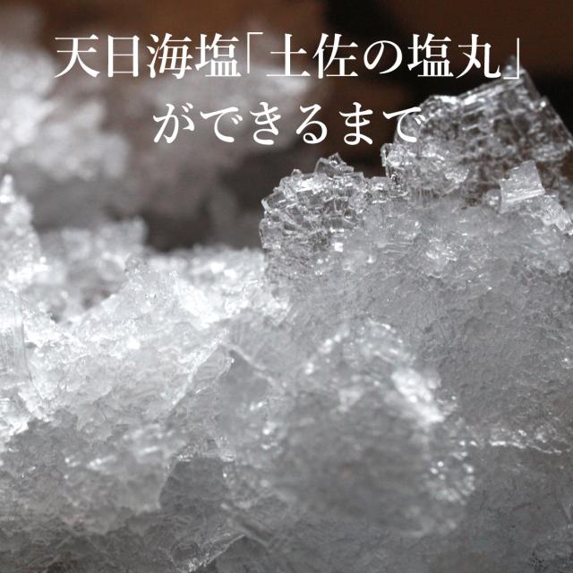 一般的な粗塩と違い、粒が固すぎず、軽く噛むだけで結晶がほどけていくのが土佐の塩丸『粗粒タイプ』の特徴です。