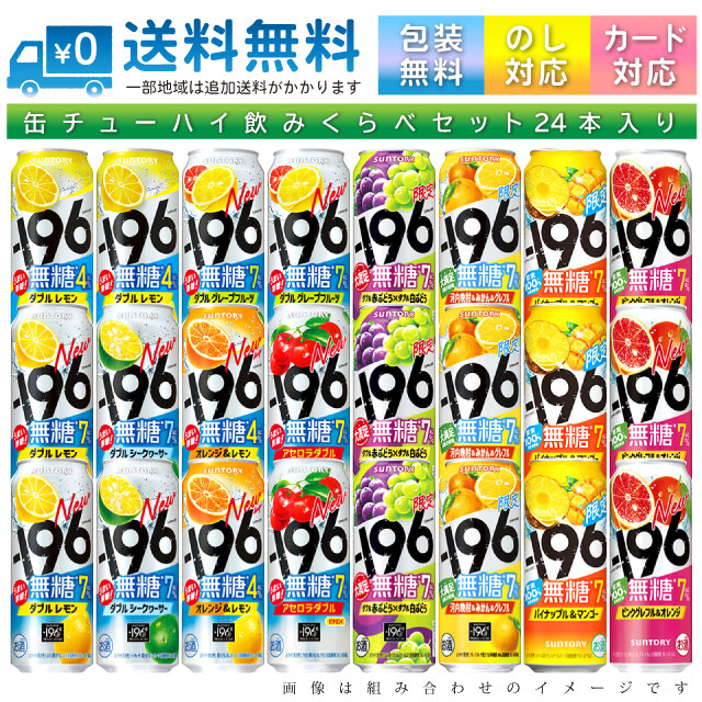 【送料無料 一部地域】 おまかせ500ml缶 チューハイ 【サントリー −196 イチキューロク 無糖】 24本入り詰め合わせ 飲み比べセット 500ml缶 × 24本 1ケース