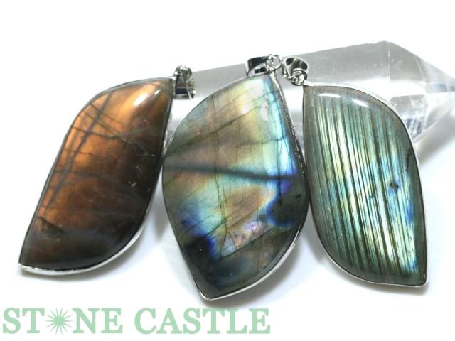 ☆高品質☆【ペンダント】ラブラドライト リーフ型 (枠あり) 天然石 パワーストーン