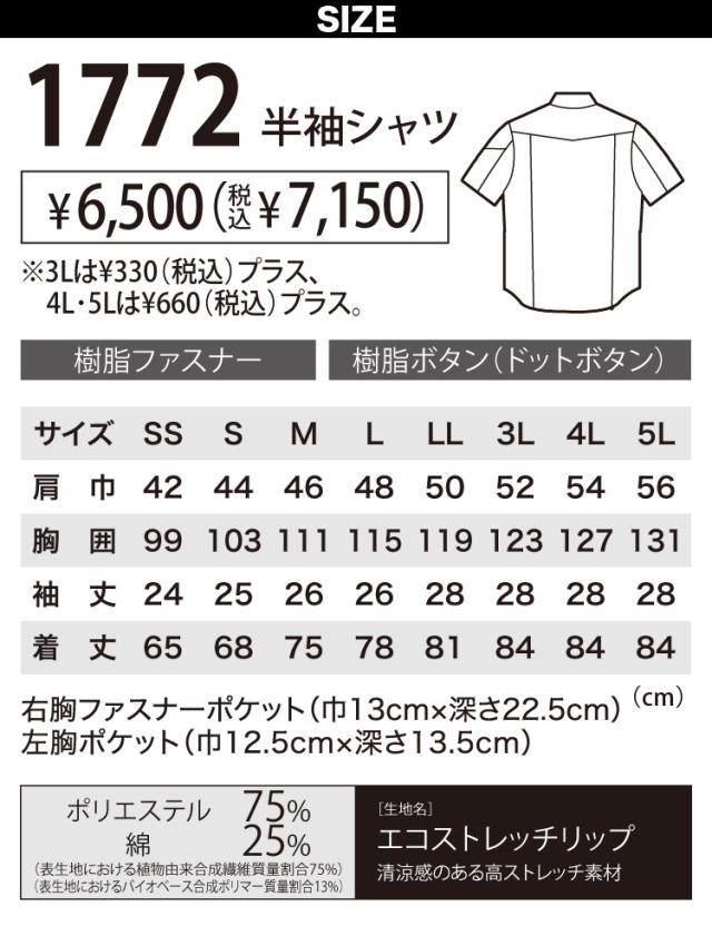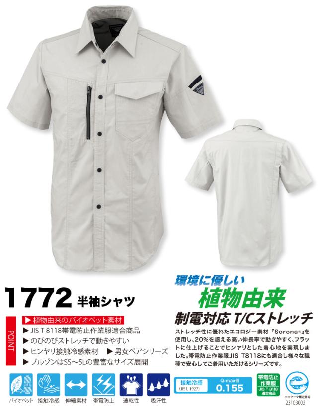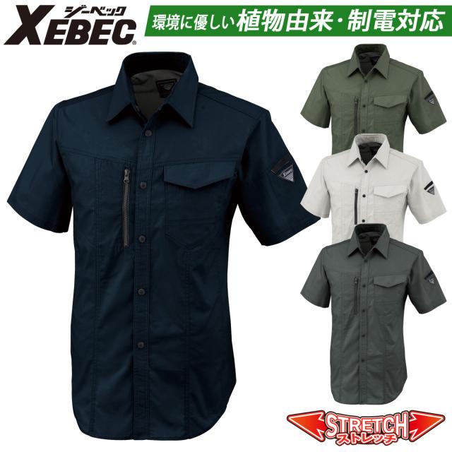 ジーベック 半袖シャツ 1772 SS-5L のびのびストレッチ XEBEC ヒンヤリ接触冷感 JIST8118帯電防止作業服適合商品 伸縮素材 定番 春夏 作業服 作業着 超伸び クール ヒンヤリ 作業服XEBEC 現場服