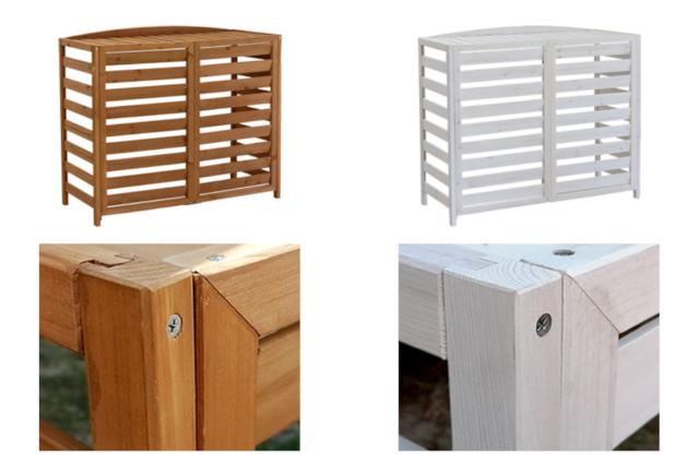 どうしても生活感が出てしまうエアコンの室外機を、天然木のおしゃれな室外機カバーで目隠しができます。大型の室外機にも利用できます。草花がきれいなお庭に置いても、センス良くイメージチェンジができます。