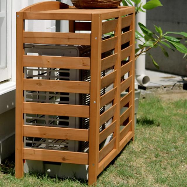 どうしても生活感が出てしまうエアコンの室外機を、天然木のおしゃれな室外機カバーで目隠しができます。標準サイズの室外機に利用できます。草花がきれいなお庭に置いても、センス良くイメージチェンジができます。