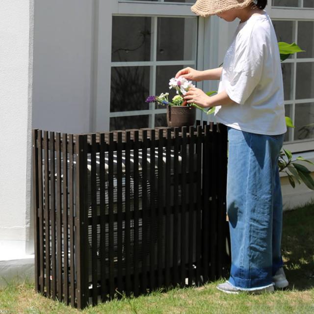 どうしても生活感が出てしまうエアコンの室外機を、天然木のおしゃれな室外機カバーで目隠しができます。大型の室外機にも利用できます。草花がきれいなお庭に置いても、センス良くイメージチェンジができます。