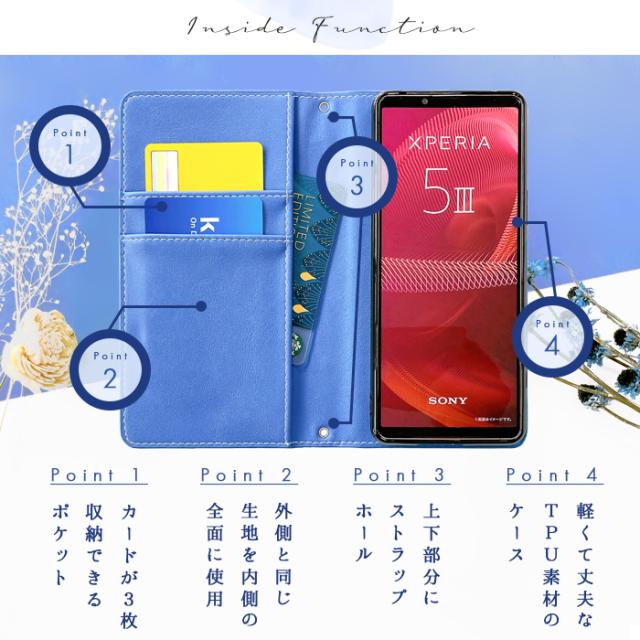 Xperia 1 III SOG03 ケース カバー 手帳型ケース スマホケース スマホカバー SO-51B A101SO パンジー 刺繍 花柄 SO51B エクスペリア 1 マーク3