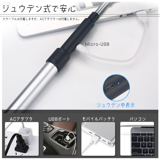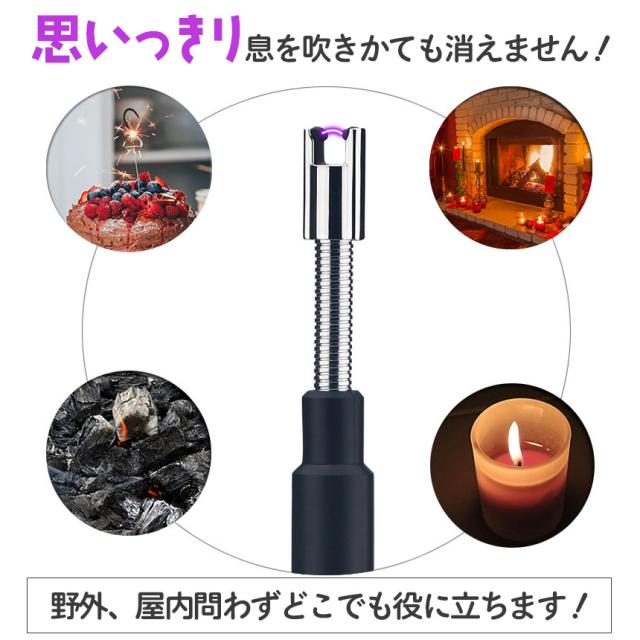 防風!伸びる!充電式!ガスもオイルもいらない「プラズマライター」です!【強風でも消えない!】屋外でも安心!強風でも、思いっきり息を吹きかけても消えません。作りもしっかりしていて、保護機能も豊富な高級感があるライター!アウトドアキャンドル、花火の点火などいろんな場面で活躍♪プレゼントにもお勧めです!