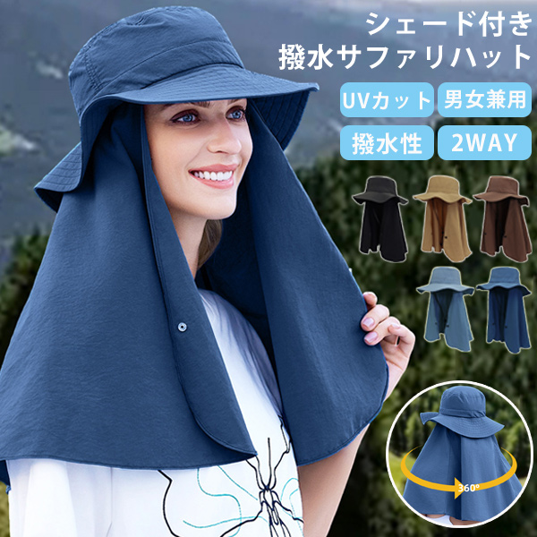 ハット レディース UVカット 撥水 帽子 シェード サファリハット つば広 日除け 日焼け対策 日焼け予防 シミ予防 UVケア 紫外線 遮光 飛ばない あご紐 送料無料