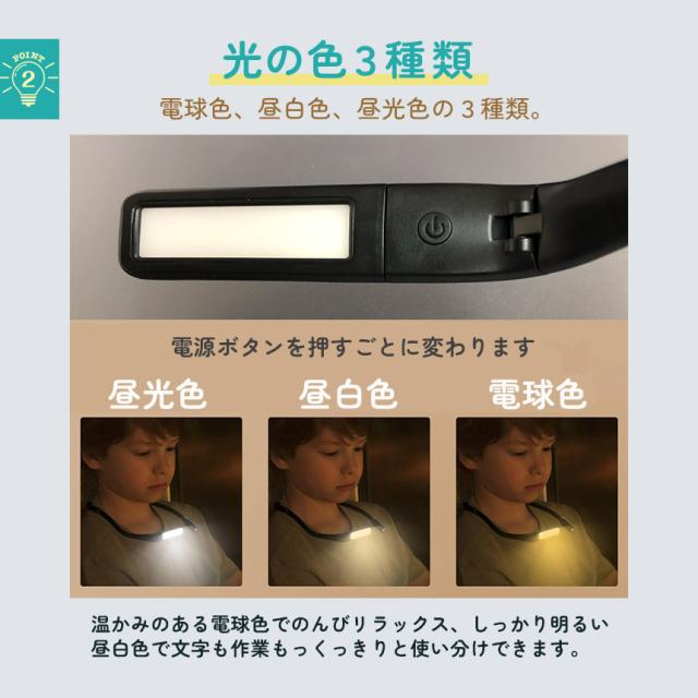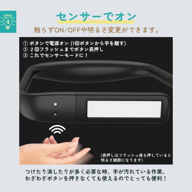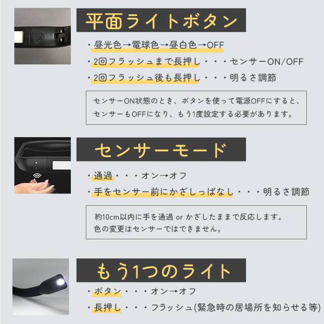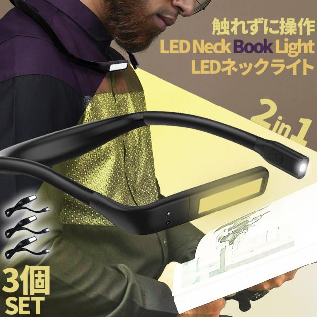 ネックライト ブックライト センサー 手をかざすだけ 3個セット 色温度3種 電球色 昼白色 昼光色 読書灯 読書 充電式 1800mAh LED 調光 角度調整 ベッドサイド 持ち運び 車 LEDリーディングライト 夜間作業 散歩 ベッド おむつ替え 寝かしつけ 勉強