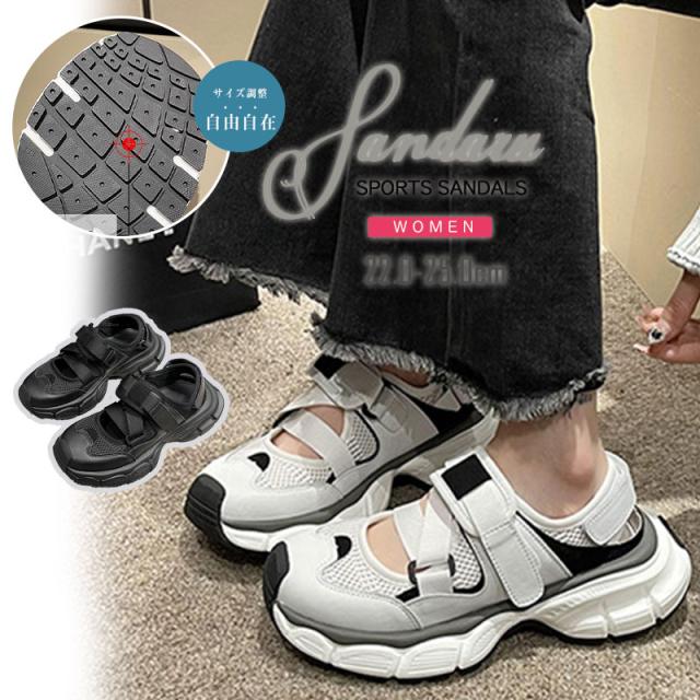 ポイント超超祭 2点購入で200円オフ中 夏新作 厚底サンダル レディース スポーツサンダル 大きいサイズ スニーカーサンダル 歩きやすい 軽量 美脚効果