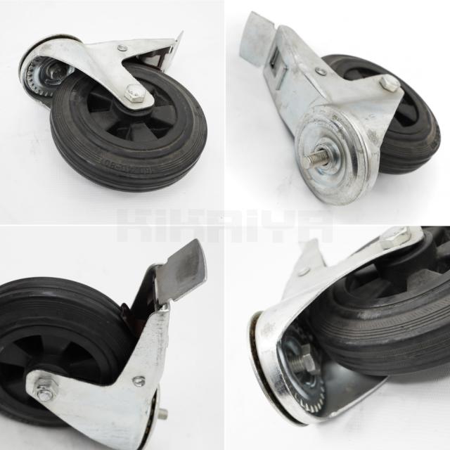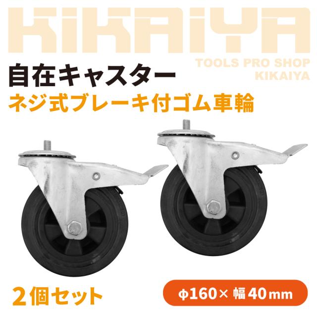 自在キャスター ネジ式 ブレーキ付 ゴム車輪 2個セット 160mm ねじ込み式 ボルト M12 ノーパンクタイヤ DIY 台車 キャスター KIKAIYA