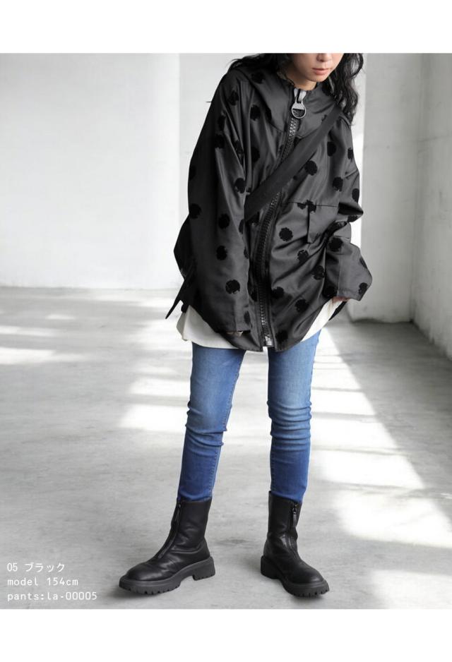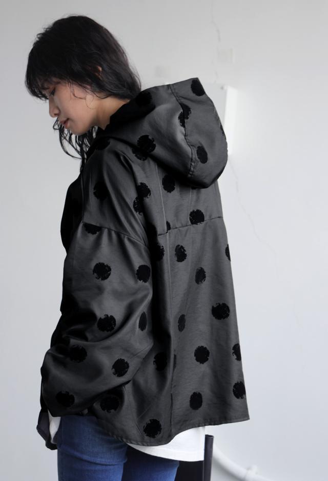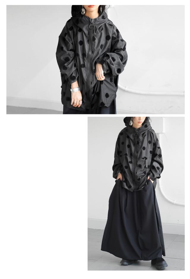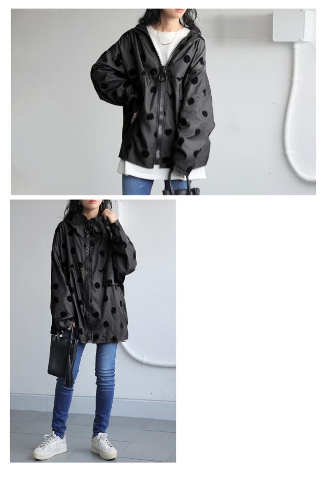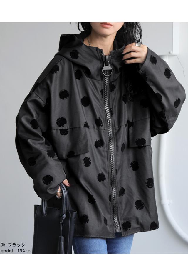 ze-01098 長袖 アウター ドット柄 柄 フード付き 前開き 羽織り ジャケット ゆったり 高級感 シンプル 上着 フロッキー ブルゾン コート フーディ— オーバーサイズ 大きめ