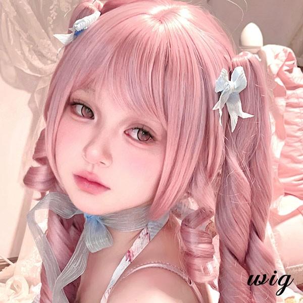 ウィッグ レディース フルウィッグ ショート ツイテール 巻き髪 ピンク ぱっつん前髪 前髪あり 可愛い かわいい 大人用 コスプレ ロリータ ゴスロリ コスチューム 原宿風 仮装 超自然 かつら wig Lolita 小顔 文化祭 イベント 学園祭 ハロウィン dq173n1n1zu