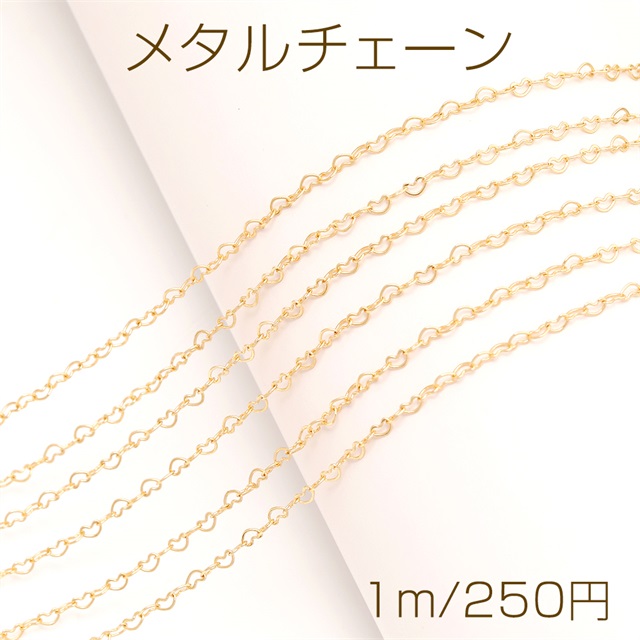 メタルチェーン ハートチェーン ネックレスチェーン アクセサリーチェーン 色落ちしにくい 18Kゴールドメッキ 銅製(長さ1m)