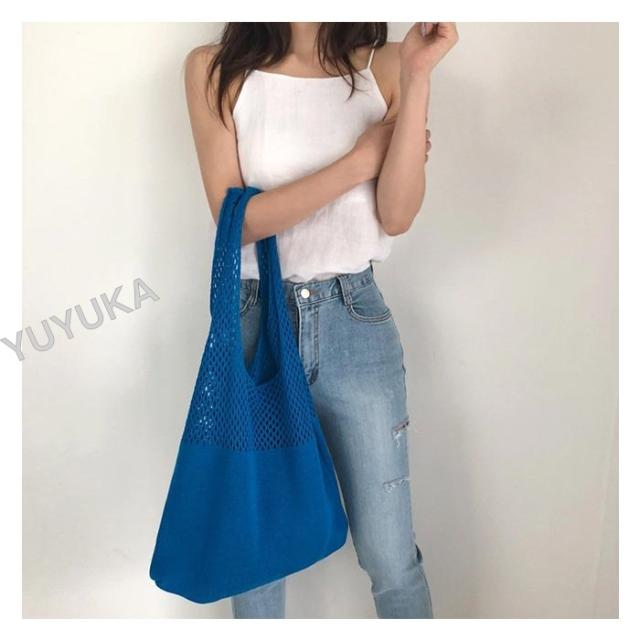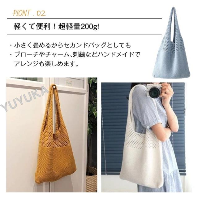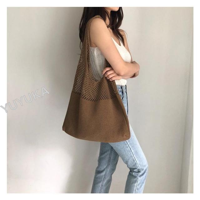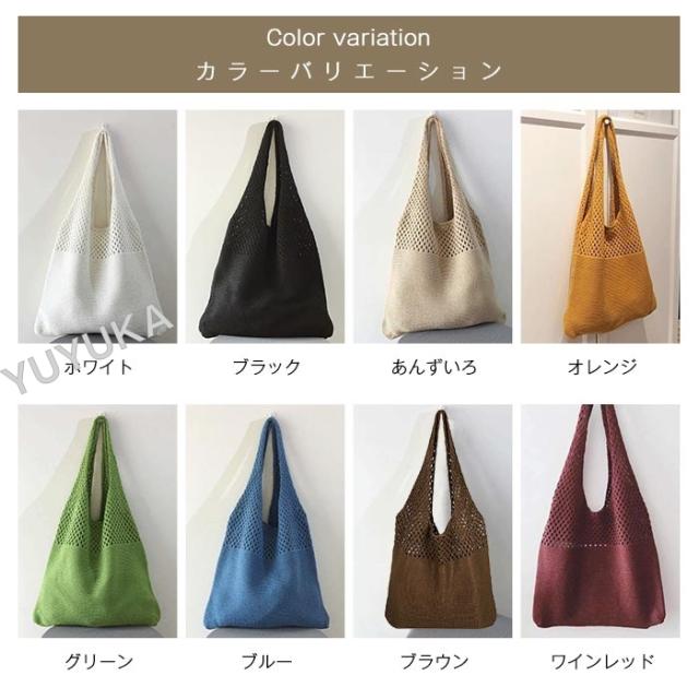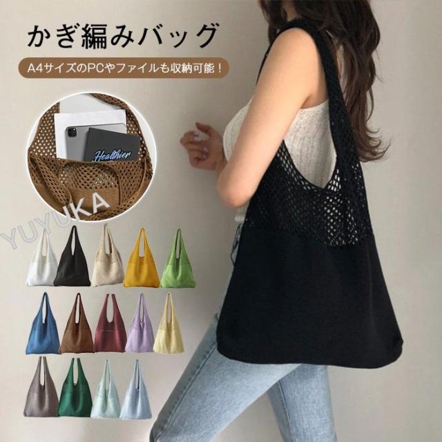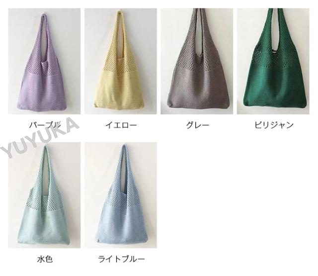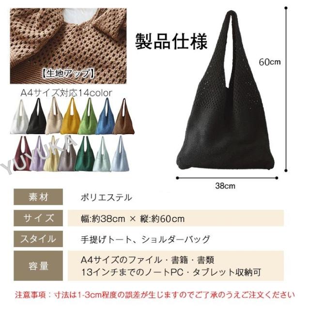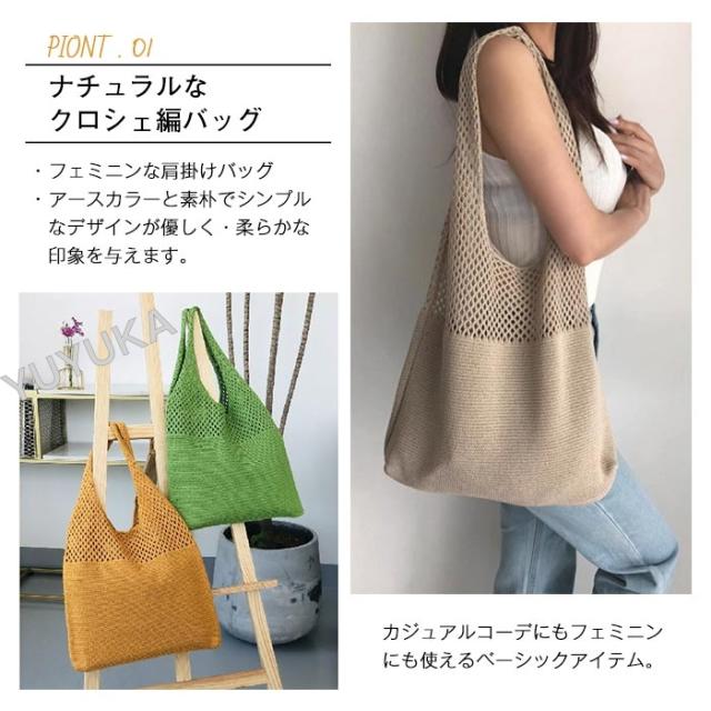 ニットバッグ ショルダー 大容量 かぎ編みバッグ トートバック レディース メッシュバック シンプル カジュアル 網バッグ 編みバッグ 軽量 女性用 婦人用 買い物 通勤 通学