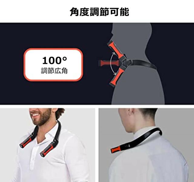 ライトの部分は100°回転可能、調節後の造形も維持できますので、省スペースで簡単に収納できて、コンパクトで持ち運びも便利です。首にかけて両手が自由に使える、便利なハンズフリーライトです。