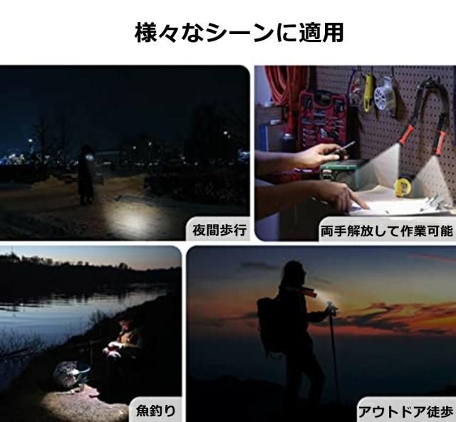 USB充電式 電池式 2つ調光モード ウォーキング ライト 登山 キャンプ用 両手が自由に使える