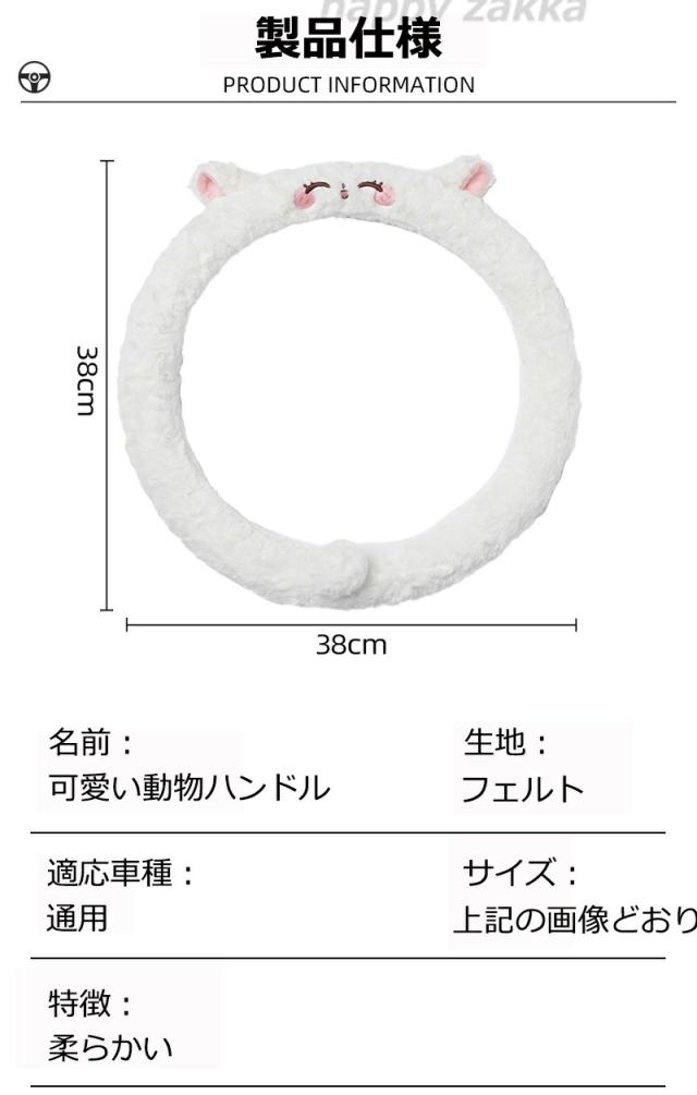 車ハンドルカバー かわいい 動物 ハンドルカバー 滑り止め 四季通用 38cm ステアリング ホイールカバー