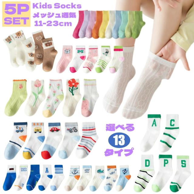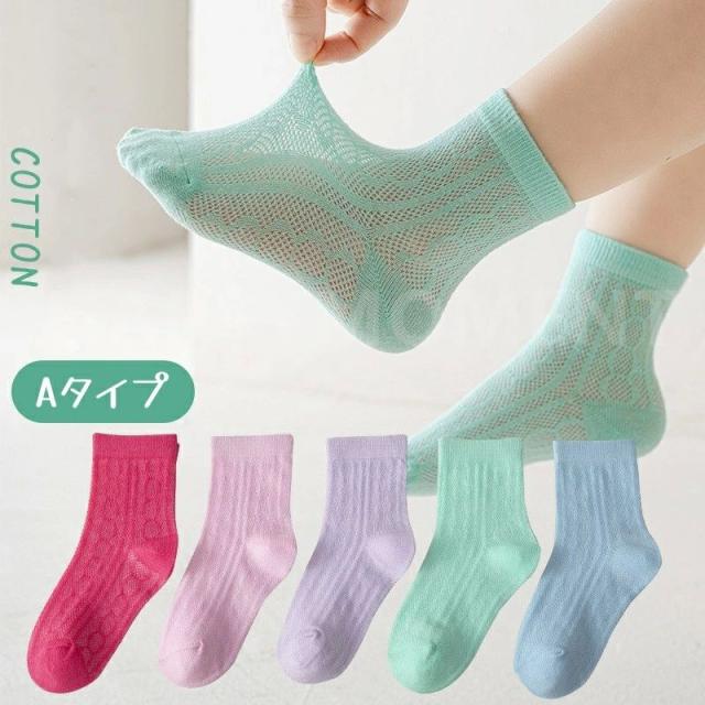 靴下 キッズ 5足組 女の子 可愛い メッシュ ソックス ショート くるぶし 子ども こども 男の子 ガールズ 夏 涼しい 子供 無地 おしゃれ かわいい セット 保育園 幼稚園 小学生 プレゼント