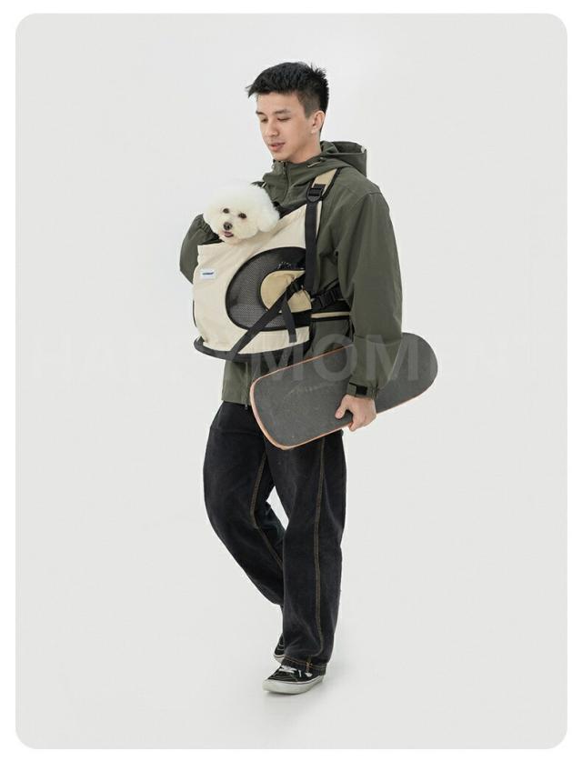 ペット巾着メッシュギャザーリュック 初の前に抱える抱っこ型ソフトキャリーバッグ。抱っこする感覚で愛犬を優しく抱きしめてください。