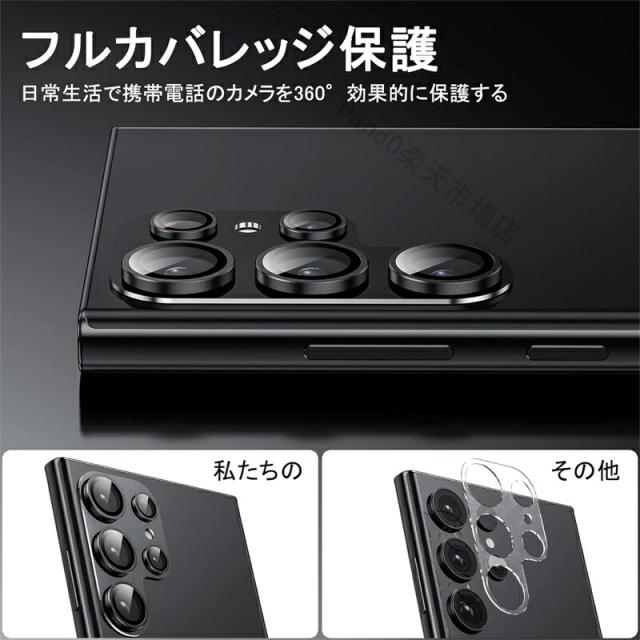 【アルミ合金製+強化ガラス】Samsung Galaxy S24 カメラ レンズ 一体型 保護フィルム S24plus Galaxy S24ultra 金属 アルミニウム合金 サムスン ギャラクシー S24 レンズ保護フィルム レンズカバー レンズカバー レンズフィルム 高硬度 全面保護 耐衝撃 高密度 簡単貼付