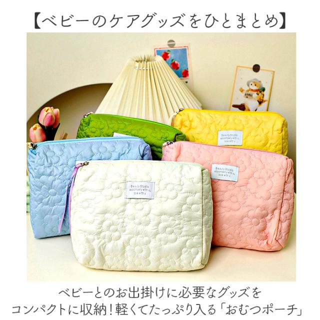 おむつポーチ 大容量 通販 オムツポーチ 軽量 ベビーポーチ マルチポーチ キルトポーチ キルティング ポーチ トラベルポーチ 赤ちゃん ベビー おしゃれ かわいい マチ付き 花柄